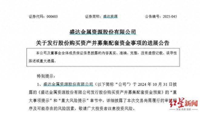 7月27日,“白银龙头”盛达资源(000603.SZ)公告称,公司正积极推进发行股份购买四川鸿林矿业有限公司(简称“鸿林矿业”)47%股权并募集配套资金的事项。