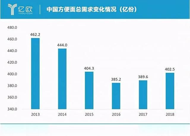 (中国方便面总需求变化情况图源:亿欧网)