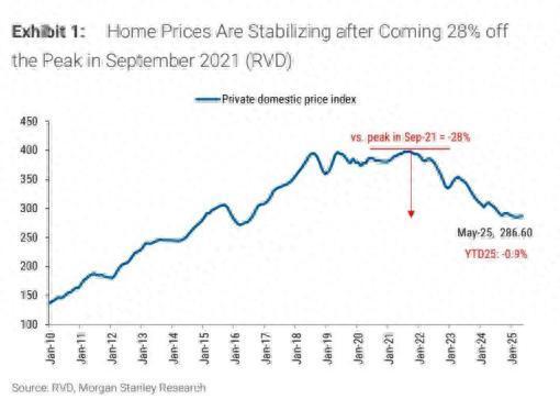 图表 1:房价在 2021 年 9 月达到峰值后下跌 28%,目前正趋于稳定(RVD)